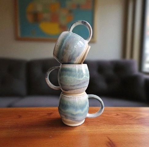 The result is a union of Mary's original artwork with Liz's signature, hand-thrown style.